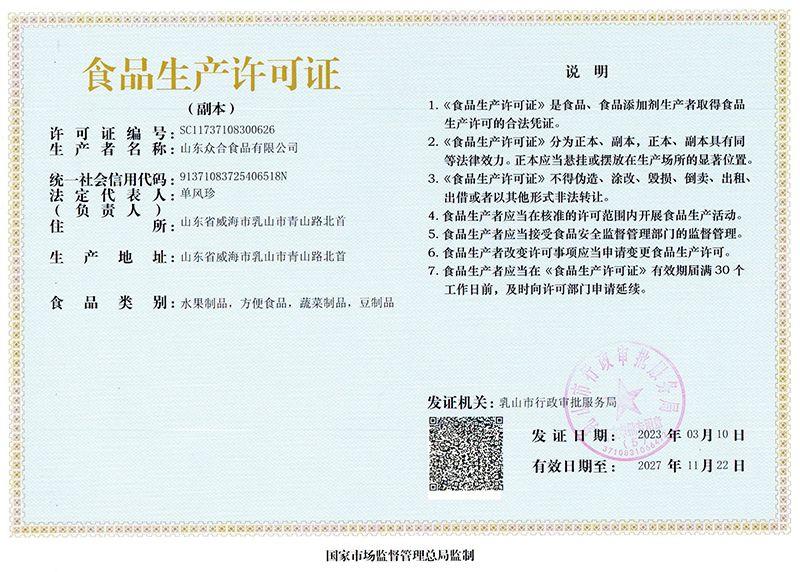 山東眾合食品有限公司 (m.cypris.com.cn)版權(quán)所有 未經(jīng)書(shū)面授權(quán)不得復(fù)制或建立鏡像 公司地址:乳山市青山路北首